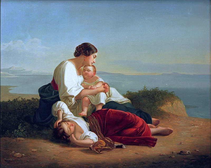 Italian woman with sleep. Children; Italienerin Mit Schlaf. Kindern — August Riedel