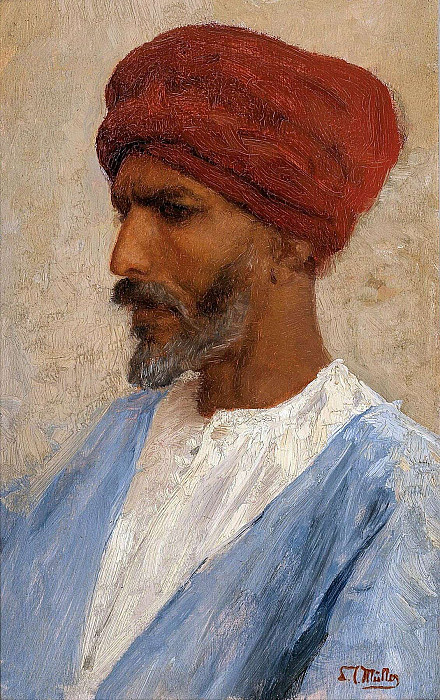 Portrait of an Oriental with a Red Turban — Leopold Carl Muller