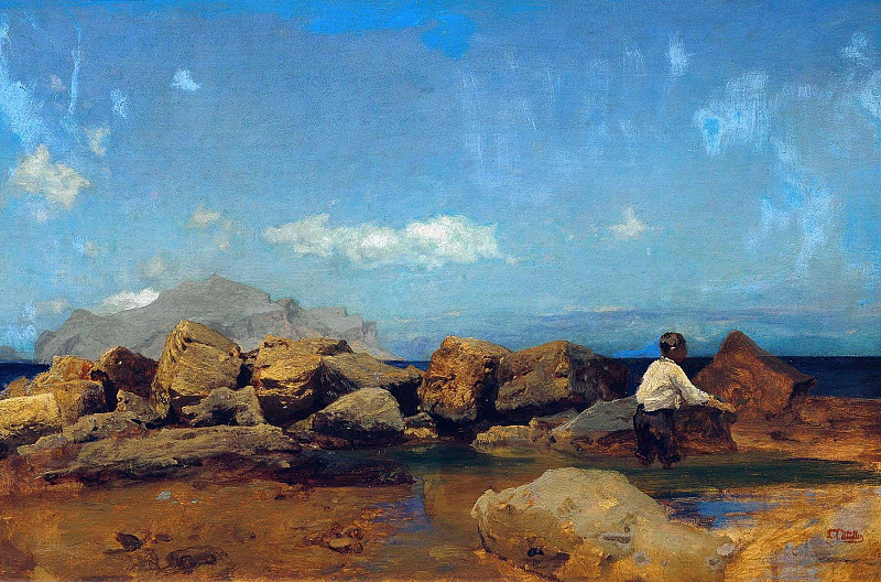 Coastline with Monte Pellegrino near Palermo; Meeresküste mit Monte Pellegrino bei Palermo — Leopold Carl Muller