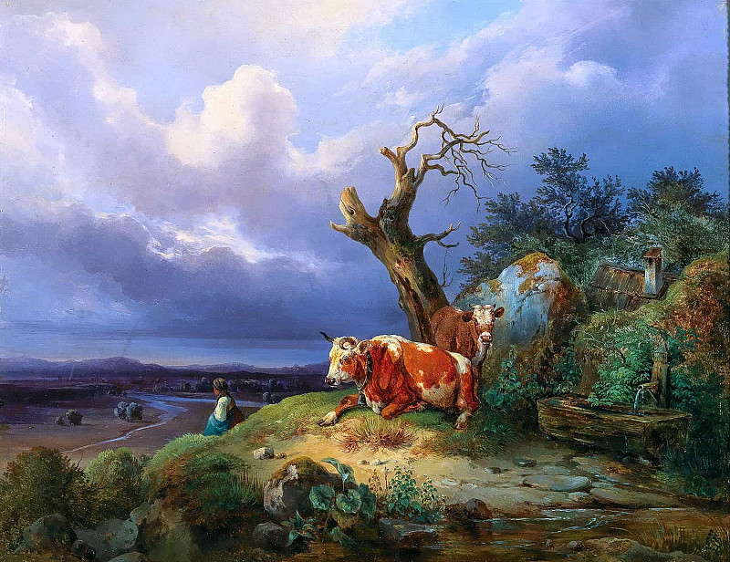 A Peasant Resting With Grazing Animals And A Foal — Edmund Mahlknecht