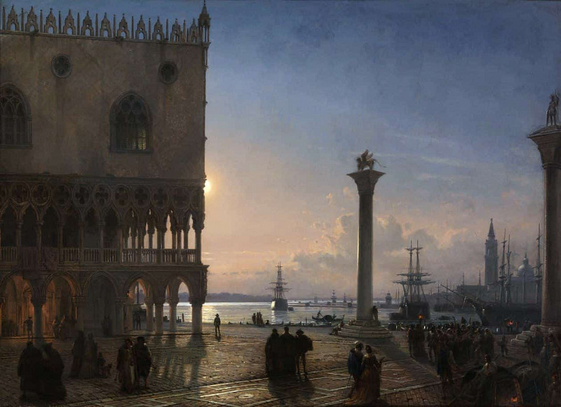 A View Of The Grand Canal Looking Towards The Rialto Bridge, Venice — The Younger Friedrich Nerly