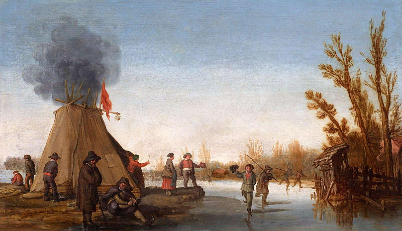 A village street scene with children playing in the foreground and figures drinking — Joost Cornelisz Droochsloot