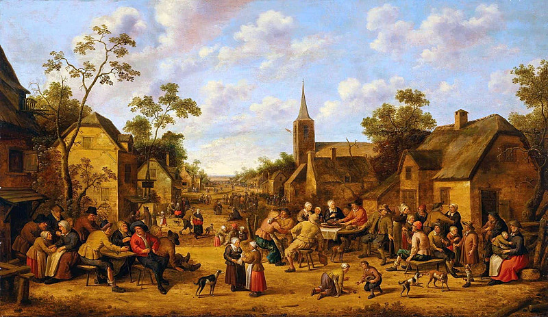 A village landscape with country folk near a tavern — Joost Cornelisz Droochsloot