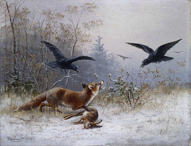 Fox Chasing Rabbits in Winter Moritz Muller (1841-1899)