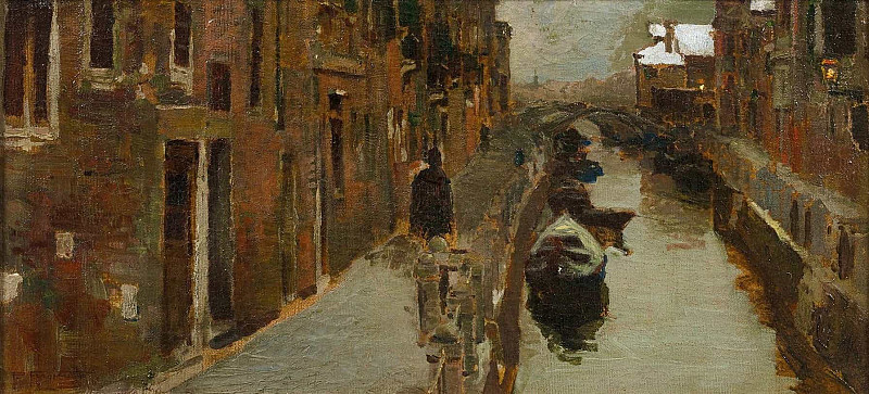 Pietro Fragiacomo – Venice, A View of a Winter Canal