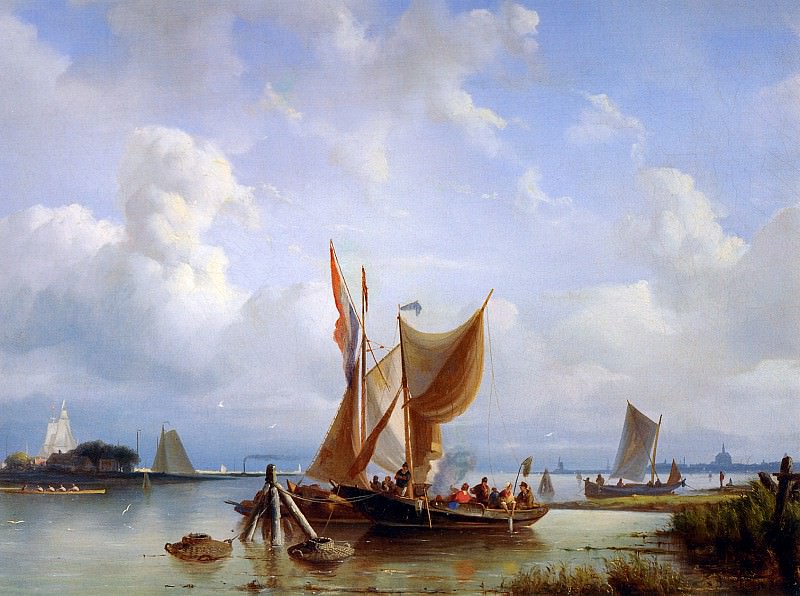 Nicolaes Riegen – Riegen Nicolaes Sailing ships at sea Sun